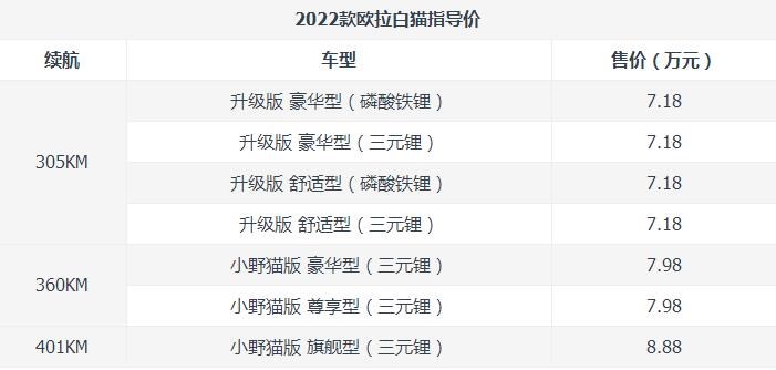 歐拉白貓2022新款什么時候上市的?長城歐拉白貓2022款價格