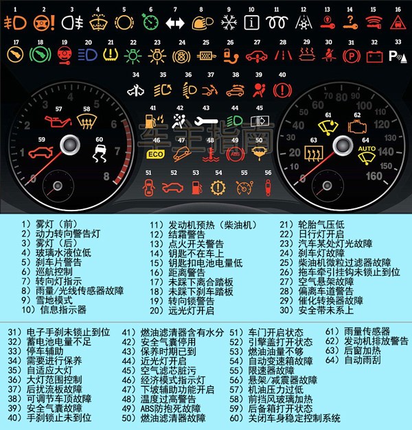 拉起駐車制動器的時候指示燈亮起, 松開駐車制動器指示燈必須熄滅。 倘若指示燈持續閃爍, 說明手剎沒有放到位或制動力不足。
