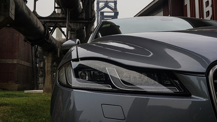 捷豹F-PACE采用LED大燈,眼神犀利細節精致,很好的凸顯了英式雪茄的神韻。這臺車裝配了自適應巡航及前攝像頭。新款巨大的中網格柵也是捷豹F-PACE很醒目的標志,造型非常立體。翼子板上的換氣裝飾板也得到了延續,奔跑的豹子顯得挺精致。