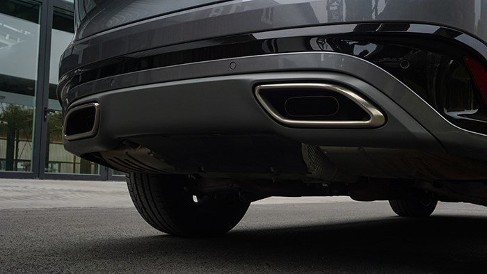 捷豹F-PACE的車尾部分比較簡約,窄小的尾燈非常適合跑車氣質,整體視覺中心比較靠上,營造了運動氣息。雙出排氣并非裝飾,當你點燃引擎的那一刻,真是可以聽到一陣排氣的聲浪,提醒你這是一臺運動取向的suv。