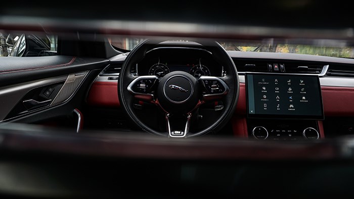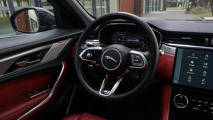 捷豹F-PACE的中控臺設計遵循了捷豹家族風格,并使用了大面積真皮材質、鋁材覆蓋,材質和精致程度都不輸對手。捷豹F-PACE的方向盤手感非常細膩,左右握位也很扎實,多功能按鍵雖然看著挺多,可實際上用著還挺順手,這臺車還帶有方向盤加熱功能。