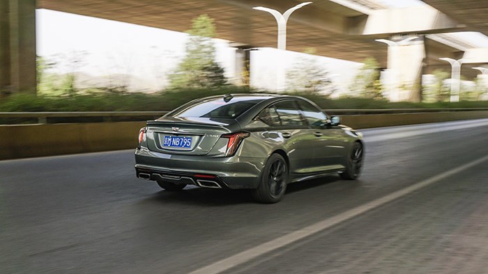 頂配鉑金版本的CT5配上了R19尺寸的黑化輪轂、尾部排氣的設計、運動式踏板和小尾翼,能夠加上的運動性點綴基本都加上了。尾燈組也很精致,甚至還做了最近很流行的熏黑設計。