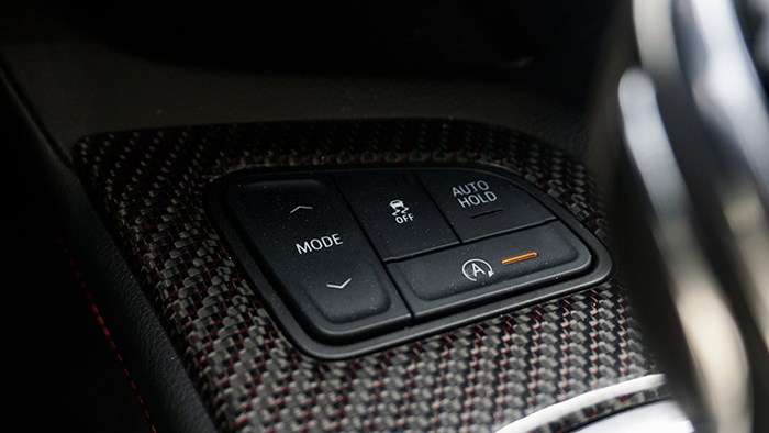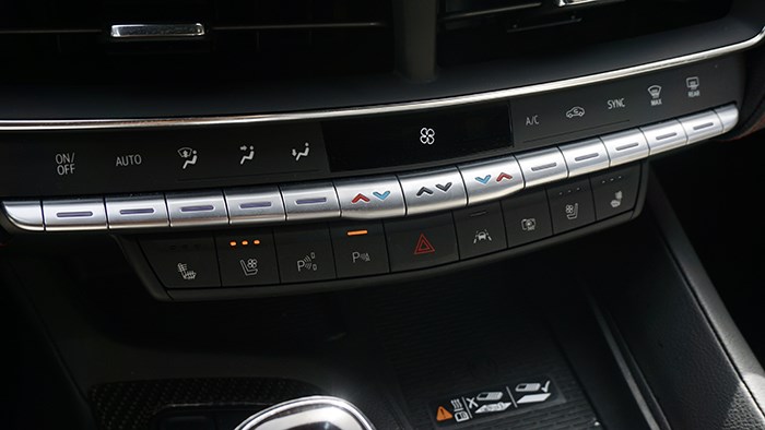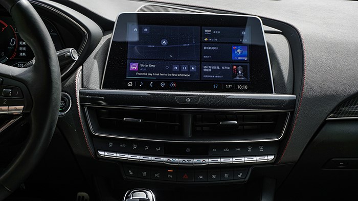 中控臺功能按鍵集中設計在了中控屏下方的位置,一字排開,這些物理按鍵手感不錯,方便操作。