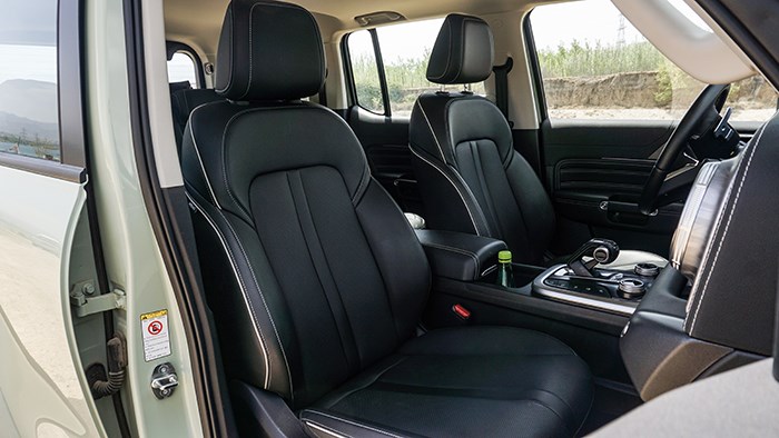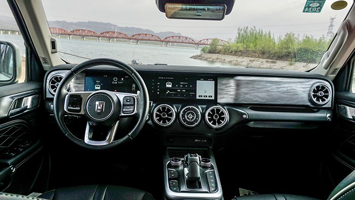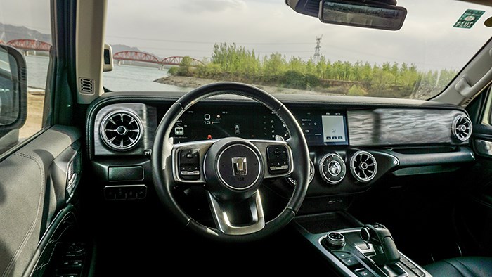 拉開車門,可以看到坦克300的內飾采用T型的布局,橫平豎直的造型與其硬派越野車的定位相呼應。