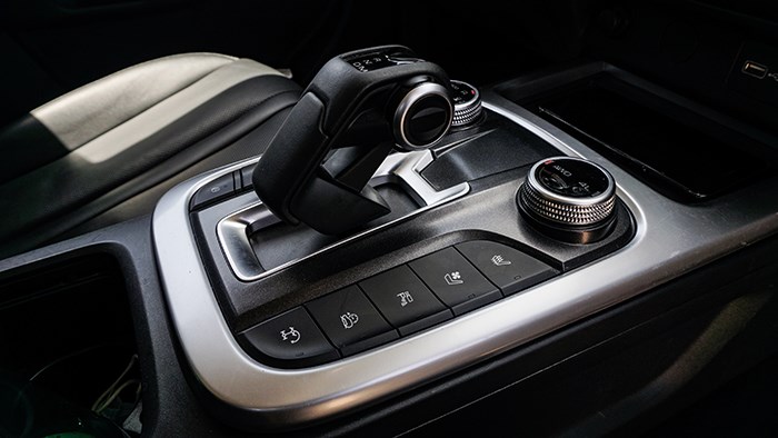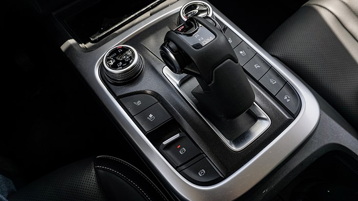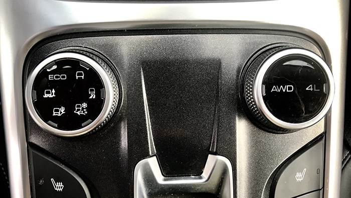 換擋機構為飛機操作桿的樣式,造型很有科技感。兩側則是一些常用的功能鍵選擇,包括越野時常用的功能都可以一鍵開啟或關閉。