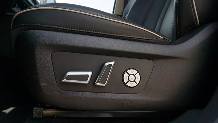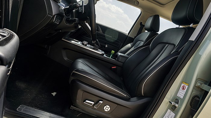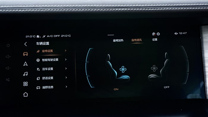 前排座椅的填充物比較厚實,恰到好處的支撐對身體非常貼合,開車時間長了也不會明顯覺得疲勞。主副駕駛座椅的加熱及通風功能均可在換擋桿區域一鍵開啟,分三檔調節。