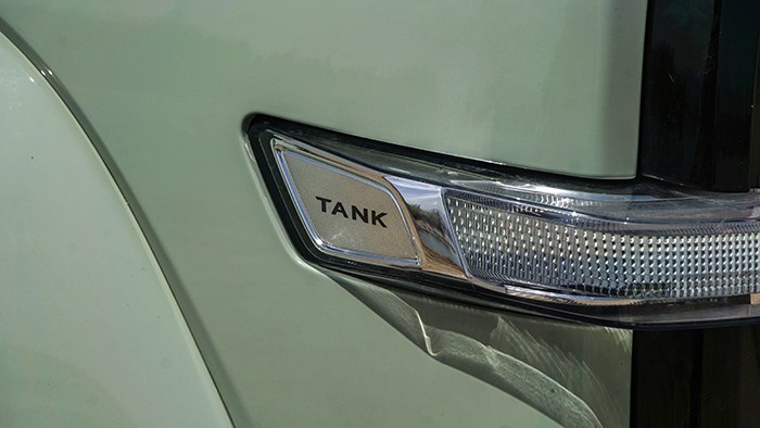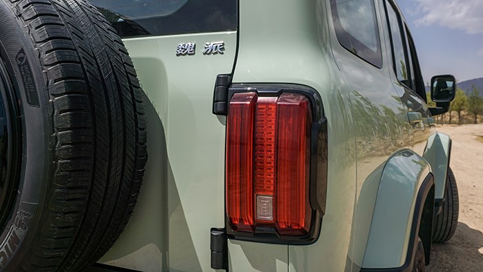 坦克300的車尾使用了越野車經典的外掛備胎設計,這樣的設計不僅讓坦克300看起來更有野性氣息,同時也不會讓備胎侵占車內空間。尾門采用從左側開啟的平開門設計,牌照框也是位于左下方的位置,車尾最能展現坦克300個性化的一面,開在路上就連尾部也是回頭率較高的存在。
