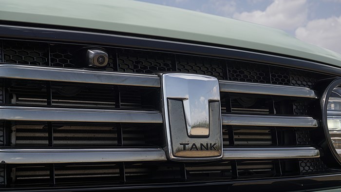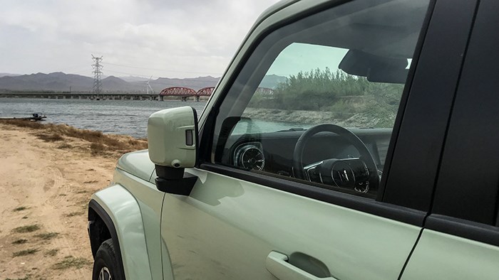 外后視鏡的尺寸不小,與坦克300的壯碩身材比較契合,同樣使用了與車身同色的涂裝。攝像頭也被集成在了后視鏡的外殼上,不會覺得攝像頭的存在是一件突兀的事情。在轉彎時這兩枚攝像頭影像可以直接投射到中控屏上,供駕駛員參考。