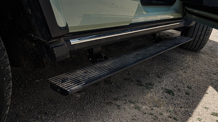 為了方便乘客上下車,坦克300城市版配備了電動式的踏板,拉開車門踏板伸出,關門踏板收回。腳踏板的面板寬大且進行了防滑處理。