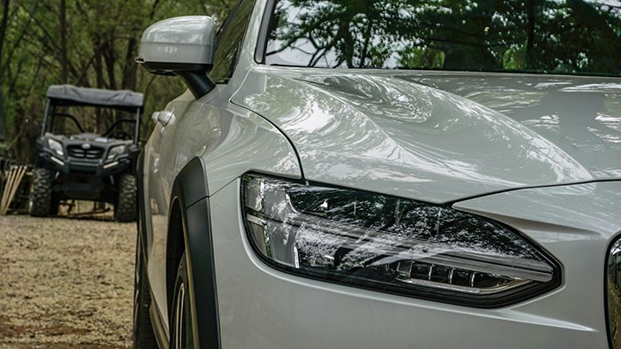 從車頭看去,V90 CC在保持優雅氣質的同時,賦予了抵達詩和遠方的魅力。經典的沃爾沃家族盾形豎置格柵,中央依然是象征著安全的沃爾沃LOGO。