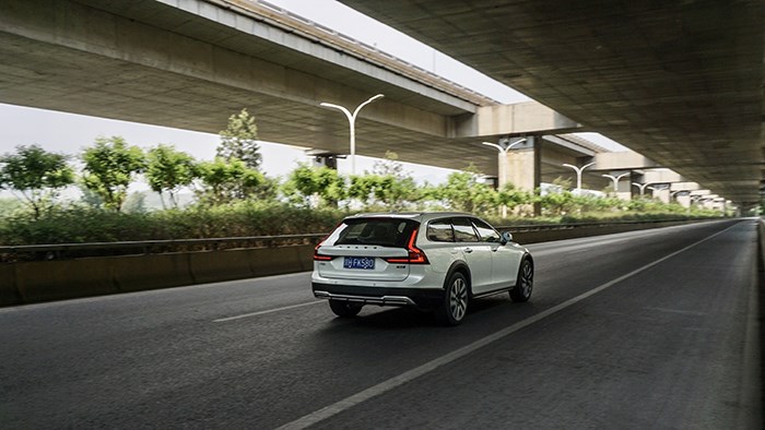 日常行駛,V90 CC雖然是有著跨界定位的旅行車,但骨子里依舊優雅充滿豪華氣質。整車靜謐性表現出色,在通過坑洼或粗糙路面時,噪音明顯經過過濾。在整車隔音部分沃爾沃是下了功夫調校優化的。