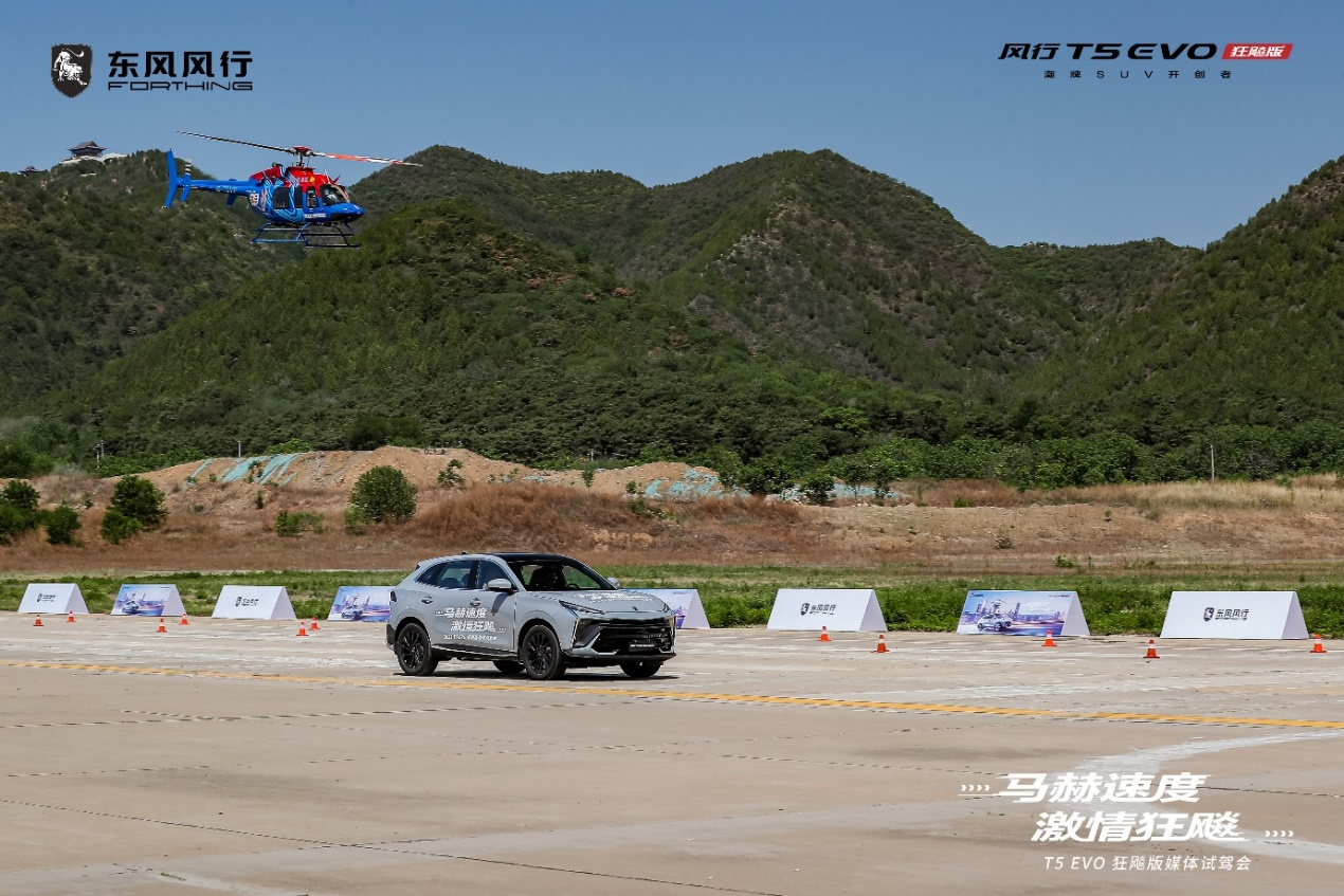 而在風(fēng)行T5 EVO狂飚版上市前夕的北京密云機(jī)場(chǎng)試駕會(huì)上,它就與一架貝爾407 Gxi直升機(jī)開啟了一場(chǎng)刺激的天地競(jìng)速,既展示出了它強(qiáng)大的動(dòng)力性能,又為年輕人們帶來了一場(chǎng)刺激、有趣、充滿視覺沖擊力的感官盛宴,吸引到了無數(shù)年輕人的側(cè)目。
