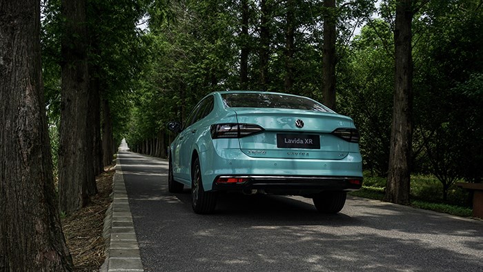 尾部大燈的內部結構很像一只射出的箭,并經過了黑化處理,還是很有特點的。尾燈上還鑲嵌了鍍鉻裝飾,提升細節方面的豪華感。在牌照框下沿,粘貼了LAVIDA朗逸的英文標識,讓車輛尾部多了些精致感。