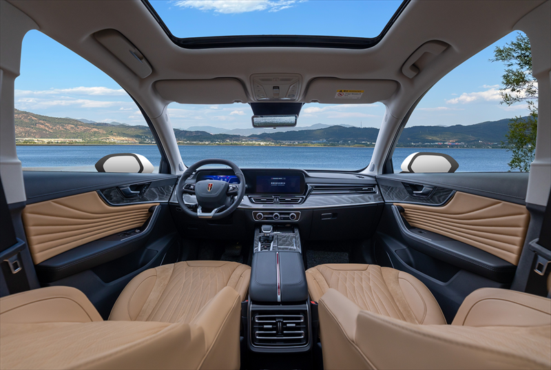 舒享豪華,強者自在安然。新紅旗HS5整車長4785mm,軸距2870mm,后排頭部空間983mm,腿部空間950mm,艙內(nèi)空間全面領(lǐng)先同級。座椅采用Alcantara Nappa真皮,溫柔舒適。近30項減振降噪技術(shù)加持使新紅旗HS5的NVH達(dá)到同級領(lǐng)先水平,定制的Bose 12揚聲器音響系統(tǒng),帶來“聲”臨其境的劇場感受。雙12.3英寸貫通屏、8.3英寸W-HUD,駕駛信息盡收眼底,大大提升駕駛安全性;新增40W手機無線充電,極大縮短充電時長。此外,9英寸極窄邊框流媒體內(nèi)后視鏡,讓倒車、泊車更便利。