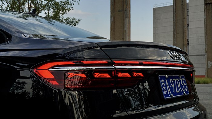 尾部方面,配備奧迪OLED貫穿尾燈,細長鍍鉻線條的修飾拓寬了整個尾部的視覺效果。尾部線條相對圓潤,加上鍍鉻包裹的隱藏式排氣,修飾出較濃的商務氣息。