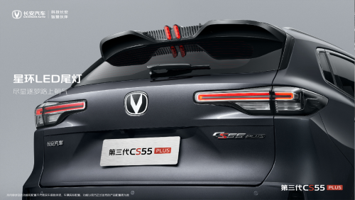來到尾部,星環LED尾燈內含128顆LED燈,交織成耀眼光環,與前大燈實現首尾呼應。環形高位燈獨特造型,打破常規長條式設計,與尾翼完美融合,有效提升點亮后的辨識度,即便在茫茫車海中,第三代CS55PLUS照樣可以脫穎而出。