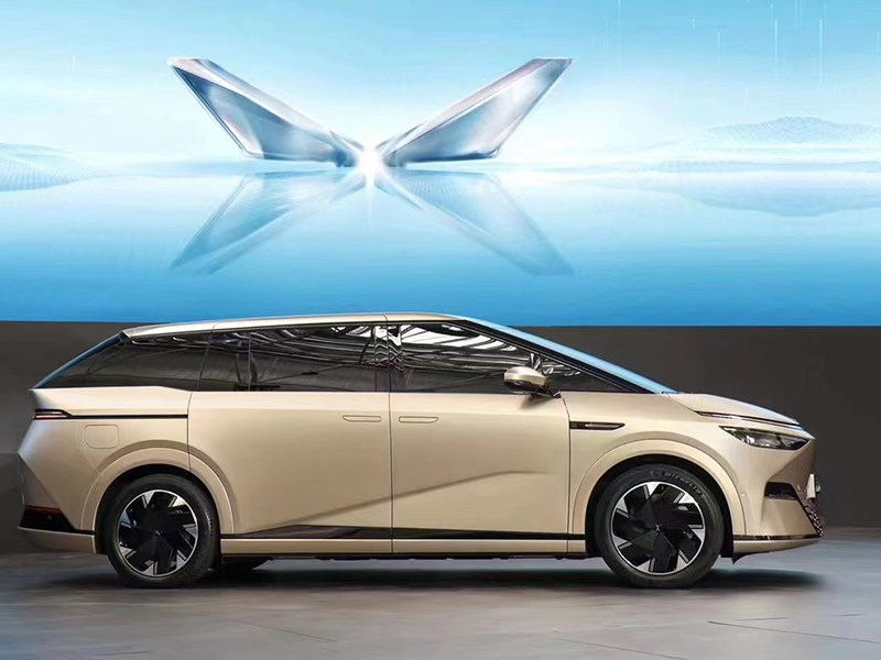 從預告圖來看,車內設計簡潔,提供大尺寸中控屏,取消了實體按鈕操作。最搶眼的是在車頂搭配了環形氛圍燈。另外第二排還配備了獨立座椅及獨立空調控制區域。結合此前消息,新車將搭載XOS天璣智能座艙,標配后輪轉向。