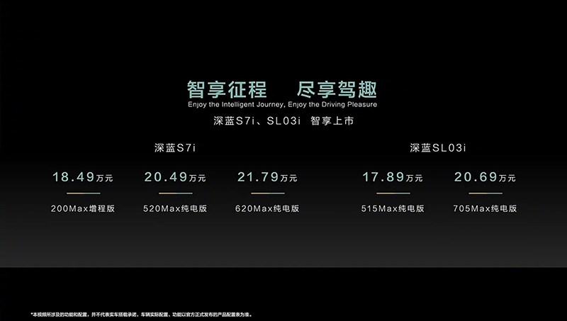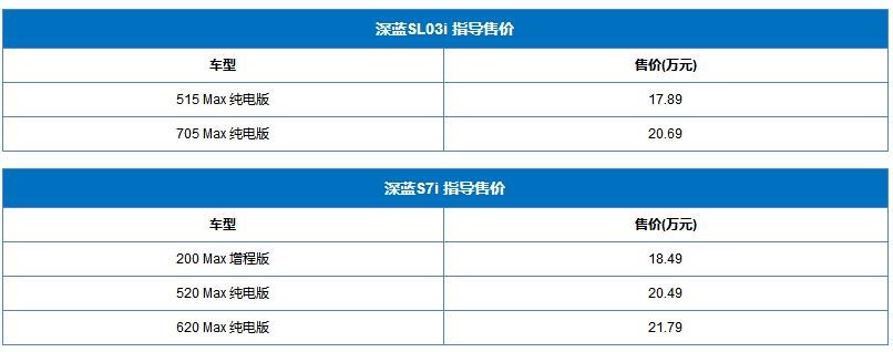 11預覽6日,深藍SL03i及S7i正式上市,前者推出2款車型,售價區間為17.89-20.69萬;后者推出3款車型,售價區間為18.49-21.79萬。