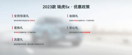 雖然“雙十一”購物節已經過去,但是準備買車的朋友也千萬不要灰心,在即將到來的“雙十二”年尾大促活動中,還有更多優惠等你來拿!就在12月,2023款瑞虎5x剛剛更新優惠政策,推出了綜合鉅惠至高15000元的限時購車福利,貸款再享4000元金融貼息!