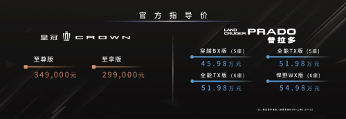 當晚,一汽豐田汽車銷售有限公司常務副總經(jīng)理清水卓治,代表一汽豐田正式發(fā)布全新皇冠口號:Discover Your Crown。搭載Multi-stage HEV多級混動的全新皇冠也正式上市,并提供至尊版和至享版2版車型,至尊版:34.9萬元;至享版29.9萬元。