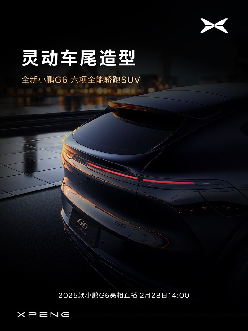 今日,2025款小鵬G6更多官圖發(fā)布,將2月28日亮相。新車定位純電中型SUV,將有81項(xiàng)升級(jí)。