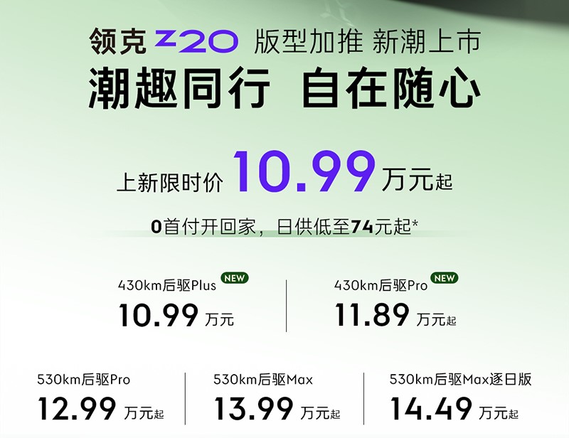 領克Z20新增入門車型上市 售價為10.99-11.89萬