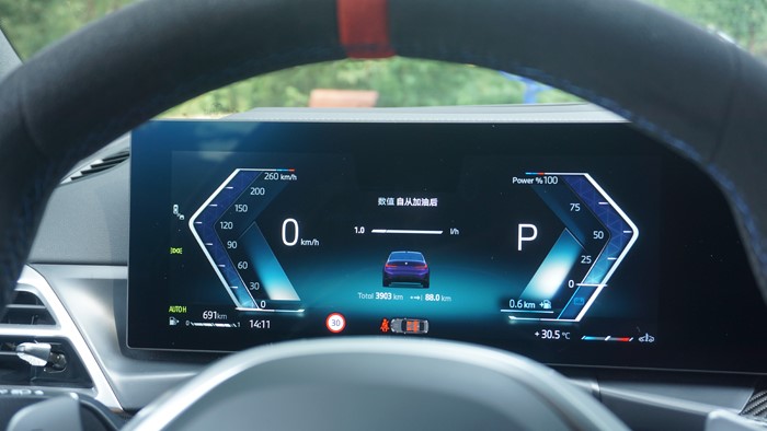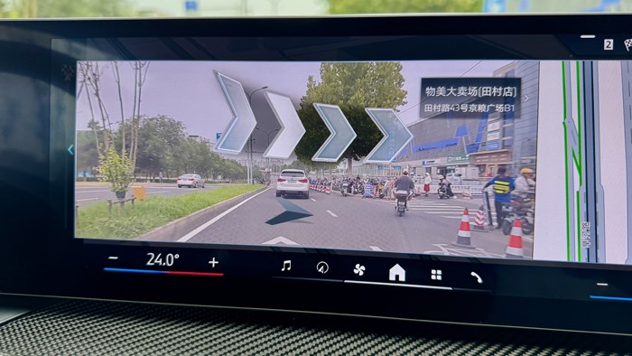 開在市區的道路上,可以感受到330i的懸架舒適性是不錯的,但是過減速帶的時候也還是很有韌勁的,保持了寶馬底盤一貫的扎實風格,在隔音水平方面也很受好評。開啟導航后,在轉彎時可以驚喜的發現居然是實景導航。