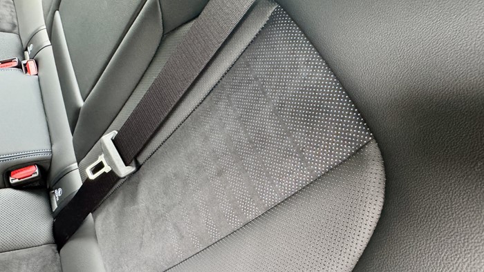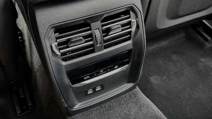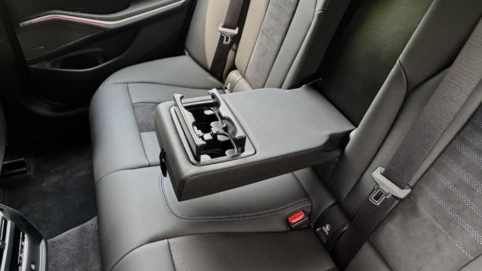 當坐上3系的后排那一刻,最大的感受是出奇的舒服,座椅很柔軟,后排座椅坐姿幾乎可做到“半躺”,靠背中央處有暗暗的藍色花紋很有質感。后排空調出風口處配置了兩個C口充電口,中央扶手處有2個水杯架。