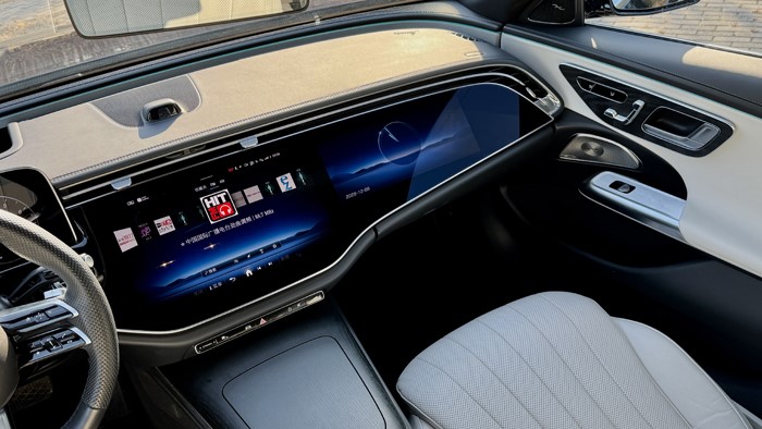像快速駕駛模式調節、環影、車輛設置、警示燈、音量調節這些物理按鍵依舊得以保留,這是豪華車喜歡給車主展示的儀式感部分,畢竟物理按鍵操作上要比去液晶屏上繁瑣尋找方便還要直接。最新一代MBUX智能人機交互系統最大的升級除了硬件之外,還支持自然語音、觸控等交互方式,且整個語音的交互邏輯和識別效率非常高。副駕駛娛樂屏可享受眾多軟件帶來的樂趣,長途不在枯燥。